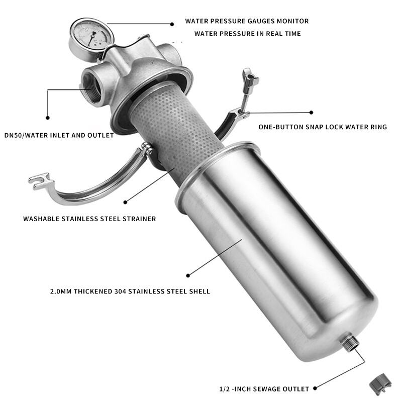 Thiết kế nhấn mạnh tính thực tiễn và độ bền. Vỏ làm bằng thép không gỉ chống móp méo và hư hại, trong khi các mối nối ren đảm bảo việc lắp đặt chắc chắn và không rò rỉ. Các tùy chọn lắp đặt linh hoạt giúp bạn có thể đặt bộ lọc ở vị trí phù hợp nhất với hệ thống của mình—gần điểm cấp nước đầu vào để bảo vệ toàn bộ ngôi nhà hoặc ở phía thượng lưu của các thiết bị nhạy cảm. Bên trong, các lõi lọc bền bỉ có thể được lựa chọn sao cho phù hợp với chất lượng nước cụ thể, với nhiều mức độ lọc (tính theo micron) khác nhau nhằm loại bỏ các kích thước hạt khác nhau. Tính linh hoạt này khiến hệ thống thích hợp cho nhiều nguồn nước khác nhau, bao gồm cả giếng sâu có hàm lượng trầm tích cao và giếng mặt thường bị đục theo mùa.