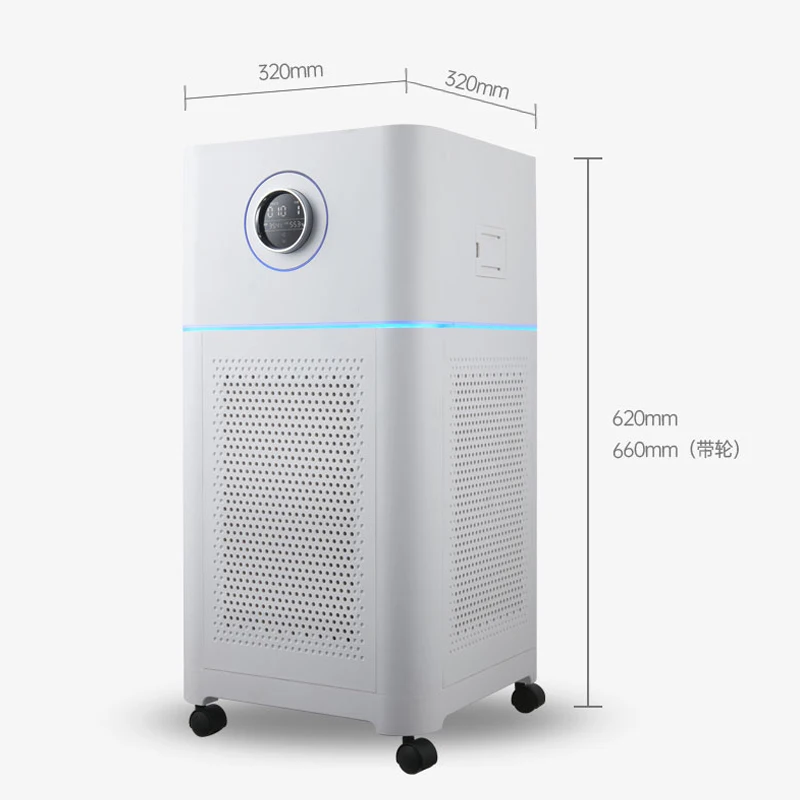 Máy lọc không khí thương mại sử dụng tia UVC, bộ lọc HEPA, nhãn hiệu OEM, điều khiển qua ứng dụng, di động, dùng cho khách sạn, có chức năng hẹn giờ và điều khiển từ xa, lưu lượng 450–500 m³/giờ