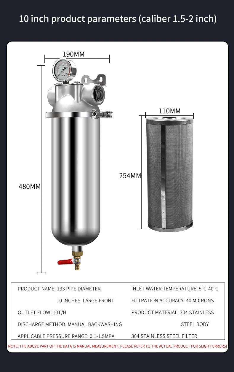 UR-HEALTH nhấn mạnh vào độ tin cậy và giá trị. Thiết bị này mang lại hiệu suất lọc ổn định mà không gây phức tạp không cần thiết. Đây là lựa chọn tiết kiệm chi phí dành cho người dùng ưu tiên kết quả đáng tin cậy và chi phí vận hành thấp. Mức tiêu thụ năng lượng rất thấp vì thiết bị hoạt động bằng điều khiển thủ công và quá trình lọc thụ động; không có bất kỳ thành phần tiêu tốn nhiều điện năng nào làm tăng hóa đơn tiền điện. Vỏ bọc bằng thép không gỉ cũng giúp giảm chi phí trong suốt vòng đời sản phẩm nhờ giảm tần suất thay thế. Việc lắp đặt được thiết kế sao cho đơn giản và dễ thực hiện. Người dùng có thể kết nối thiết bị chỉ với kỹ năng cơ bản về đường ống, đồng thời tài liệu hướng dẫn rõ ràng được cung cấp kèm theo. Các trường hợp lắp đặt điển hình bao gồm: xử lý sơ bộ nước máy hoặc nước giếng trước khi đưa vào văn phòng nhỏ, xử lý sơ bộ trước hệ thống tia cực tím (UV) hoặc hệ thống xử lý hóa chất, hoặc sử dụng như một giai đoạn bảo vệ cho các đường ống tưới tiêu và đường ống rửa thiết bị.