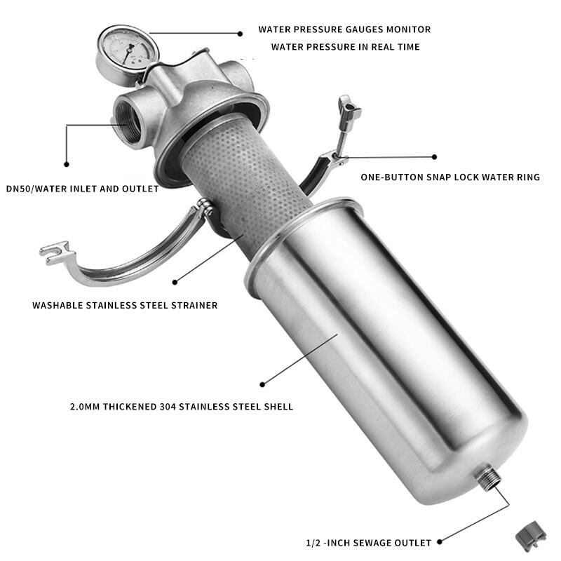 Bảo trì là thực tế và nhanh chóng. Các bộ lọc dạng cartridge có thể tiếp cận dễ dàng thông qua nắp đậy tháo lắp được trên thân vỏ làm bằng thép không gỉ. Việc kiểm tra và thay thế định kỳ chỉ mất vài phút, và chỉ cần sử dụng các dụng cụ cầm tay thông dụng. Nhãn dán rõ ràng hướng dẫn người dùng từng bước cơ bản, đồng thời các phụ tùng thay thế được thiết kế để dễ dàng tìm mua. Các tính năng an toàn bao gồm các biện pháp xả áp suất và gioăng đệm chắc chắn nhằm ngăn ngừa rò rỉ. Thân vỏ được kẹp chặt một cách an toàn và các miếng đệm được chế tạo để chịu được nhiều chu kỳ bảo dưỡng lặp lại. Đối với các chuyên gia quản lý chất lượng nước từ cơ sở tại nhà, những chi tiết an toàn thực tế này giúp giảm thiểu nguy cơ tràn đổ hoặc sự cố ô nhiễm.