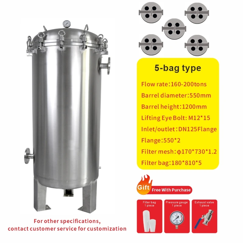 Vỏ lọc đa túi công nghiệp độ chính xác cao, lưu lượng lớn, làm bằng thép không gỉ 304/316, nguồn cấp điện thủ công, RV, gia dụng, ngoài trời