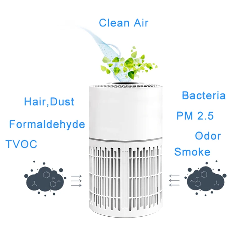 Máy lọc không khí mini cho gia đình và văn phòng, kiểu để bàn cá nhân, nguồn điện chạy bằng điện, vỏ nhựa, chức năng tạo ion âm, bộ lọc HEPA H11, lưu lượng khí 350 m³/giờ
