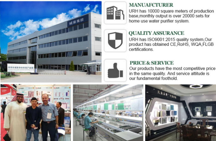 Thâm Quyến UR-Health Technology chuyên nghiên cứu và phát triển, sản xuất và bán các thiết bị lọc nước, máy tạo ion nước, linh kiện bộ lọc nước, v.v. Các thiết bị làm sạch nước hệ thống RO của chúng tôi đã được chứng nhận CE và RoHS, và công ty chúng tôi là thành viên của Hiệp hội Chất lượng Nước Hoa Kỳ